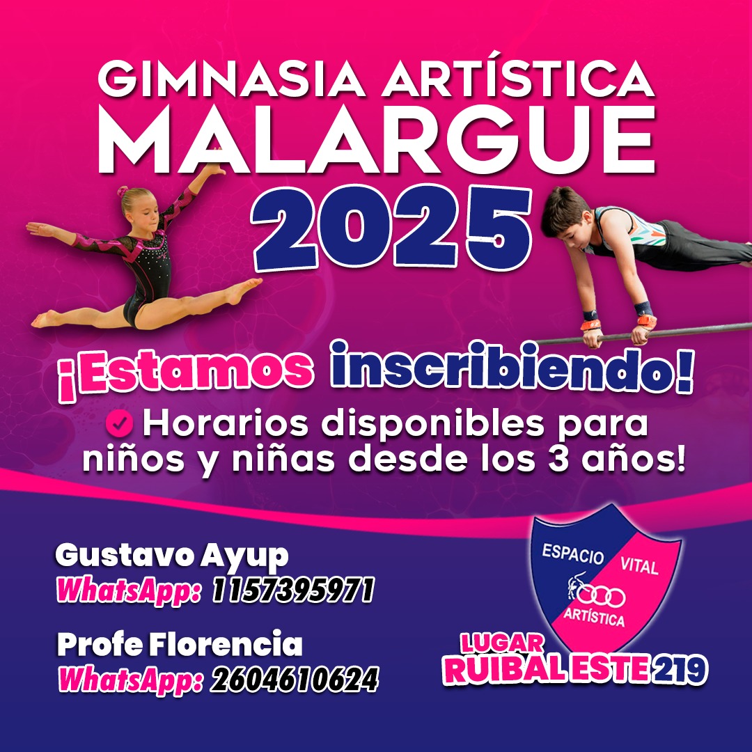 Inscripciones abiertas en la Escuela de Gimnasia Artística de Malargüe para el ciclo 2025. Vacantes disponibles con promociones especiales.