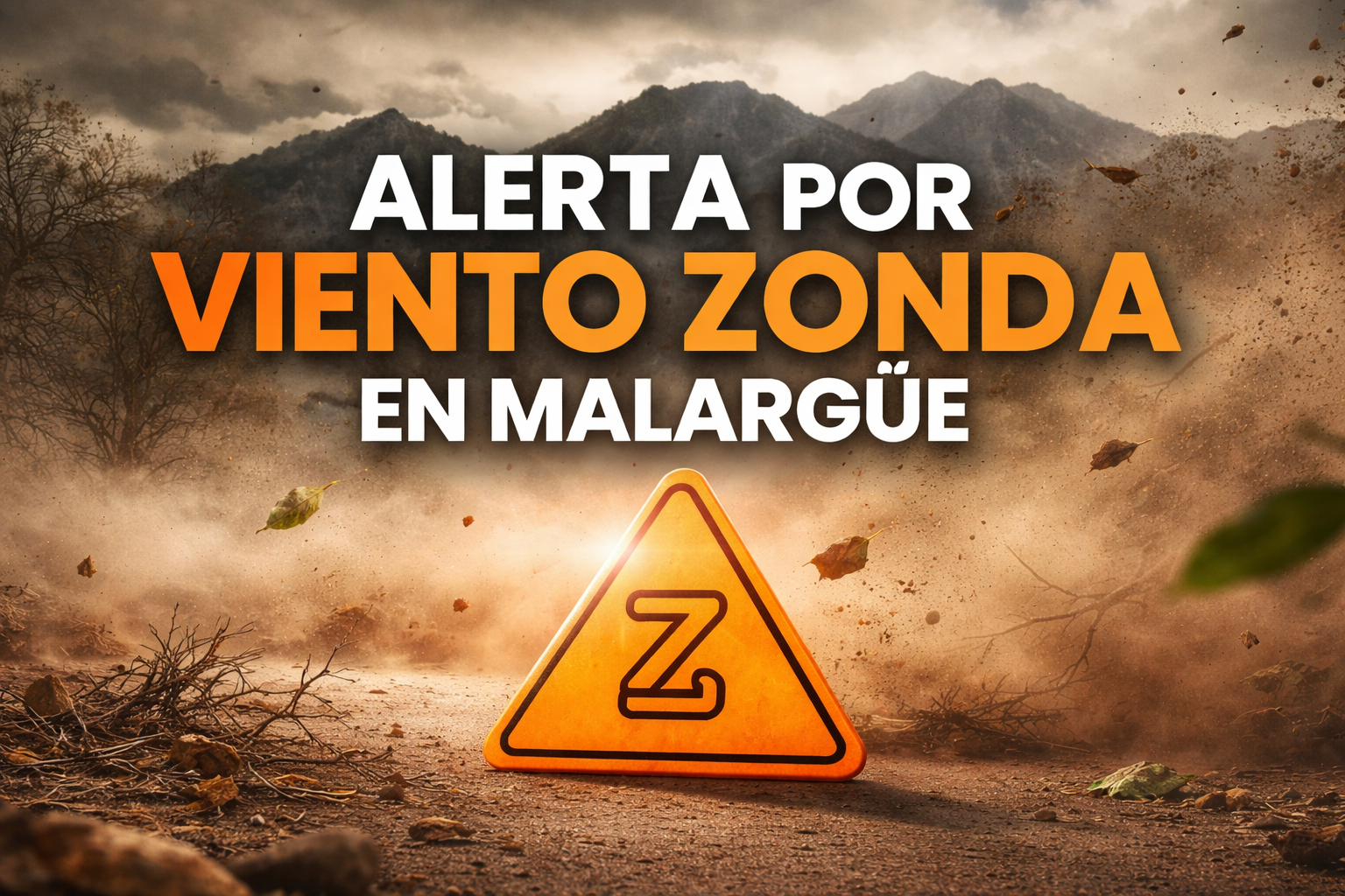 El Servicio Meteorológico Nacional emitió una alerta amarilla y naranja por viento Zonda para Malargüe. Se esperan ráfagas intensas.