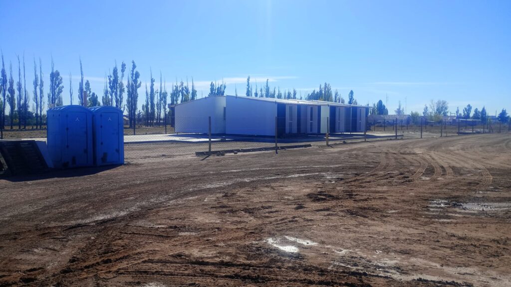 “Se hizo el cierre perimetral de obra, ya están los postes y luces de obra conectada. Además, ya están instaladas las casillas de inspección, de jefe de obra, de los obradores y el cartel de obra. Del mismo modo, se ha hecho la limpieza del terreno, extrayendo la capa vegetal, aproximadamente de unos 20 centímetros. Luego de tomar los niveles del piso, se comenzó con las tareas de relleno y compactación. Se está rellenando con estabilizado en capas de entre 15 y 20 centímetros compactando con rodillo de 10 toneladas previo regado con camión regador. También, ya se encuentra presentado y aprobado el estudio de suelo de donde se va a asentar la escuela”, explicó Morábito.